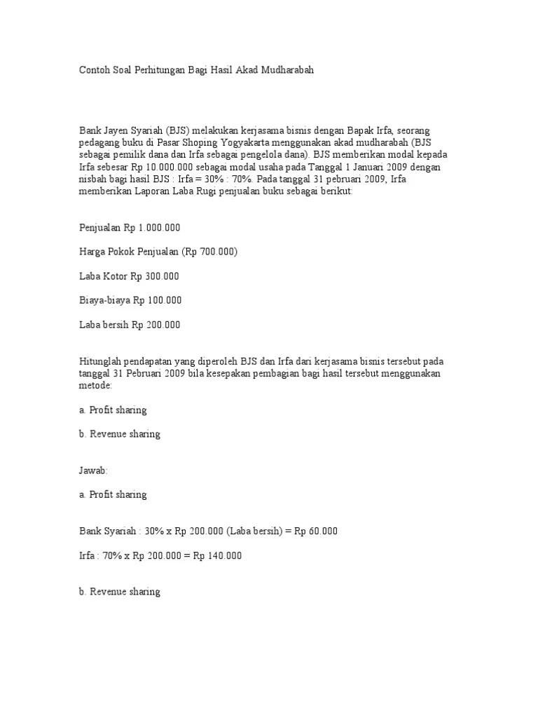 Contoh Contoh Soal Perhitungan Bagi Hasil Pada Pembiayaan Mudharabah : Contoh Soal Perhitungan Bagi Hasil Akad Mudharabah Contoh Soal Perhitungan Bagi Hasil Akad Mudharabah Bank Jayen Syariah Bjs Melakukan Kerjasama Course Hero - Contoh, transaksi qardh dimana bank syariah meminjamkan uang tanpa.