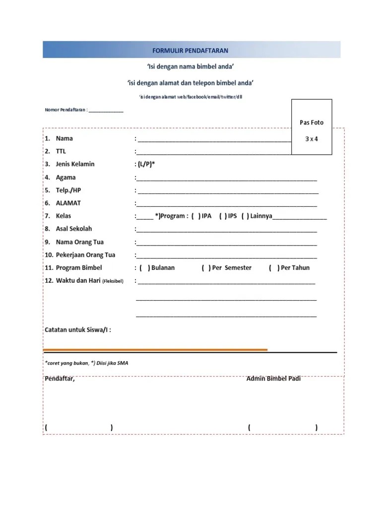 Contoh Format Formulir Pendaftaran Tpq / Contoh Formulir Pendaftaran Bimbel : Formulir pendaftaran sangat penting untuk mendata nomor induk siswa atau santri.